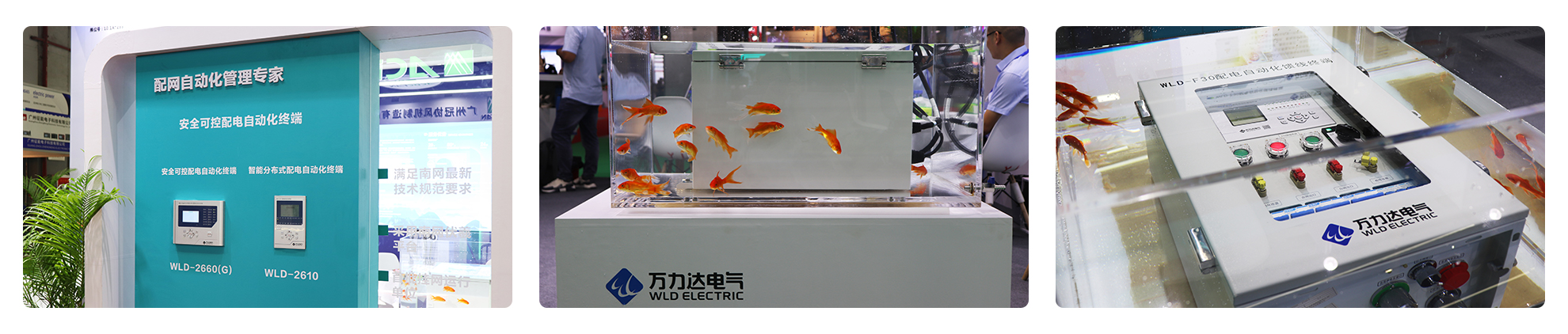 “這是我們自研自產(chǎn)的FTU,有不同防護(hù)等級(jí)可選,水箱里展示的這款是IP67的,可以看到,水下浸泡著也依然可以正常操作……”,技術(shù)人員在一旁解說(shuō)道。
